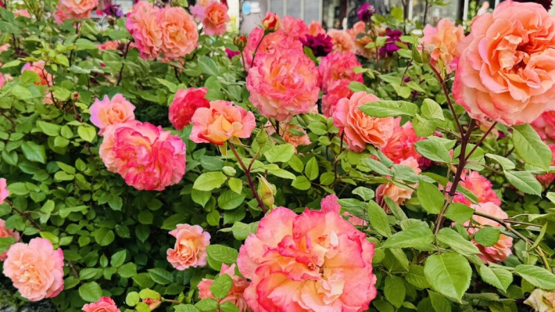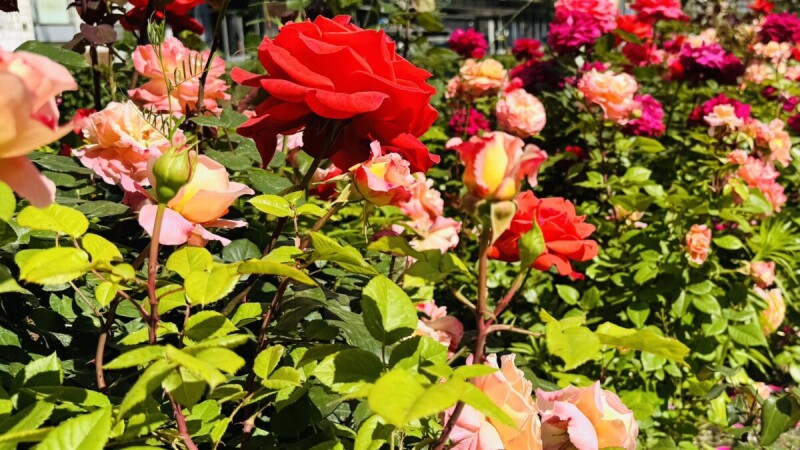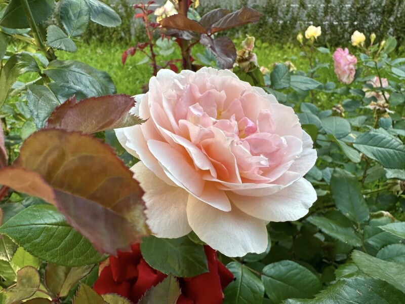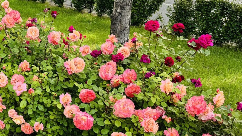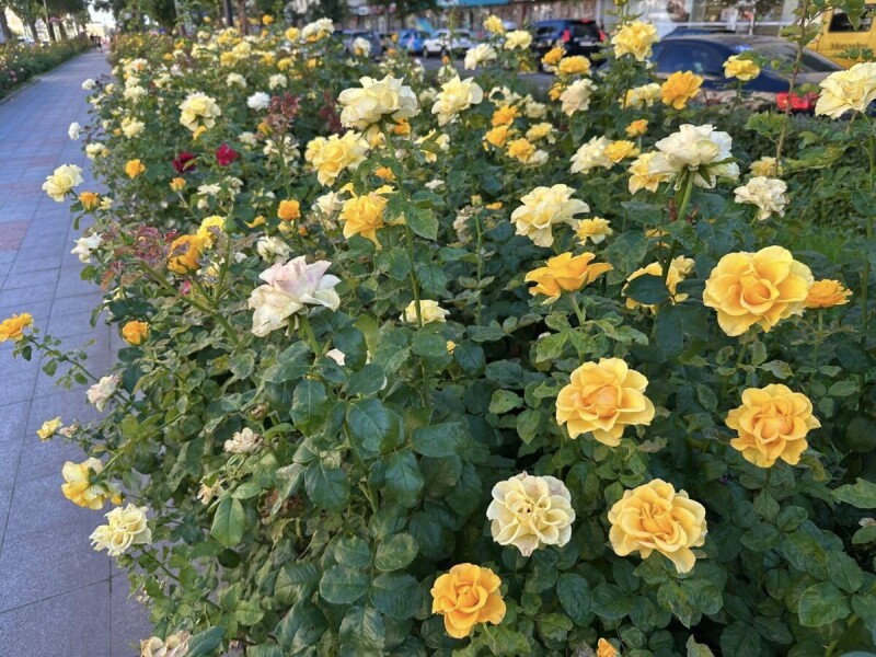 Серед рослинності переважає жива огорожа з кизильника блискучого, самшиту вічнозеленого, copтові чайно-гібридні троянди в асортименті, масиви декоративно-листяних кущів, тополі пірамідальні та Боллє.